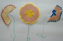Во дворе осенний холод... И так не хватает того, чтобы расцвели красивые цветы. Вот поэтому мы с детьми решили эти цветы сотворить своими руками из того, что первым попадется под руку. Конечно же, это были цветные карандаши. И чтобы было красивее и интереснее, мы сделали цветы из карандашных стружек. Детям очень понравился такой креатив. Все работали с большим удовольствием, от того и получили море позитива и положительных эмоций.