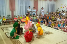 Сегодня воспитанники подготовительных групп под руководством воспитателя по обучению английскому языку показали театрализованное представление сказки на английском языке «Бабочка Алина и ее картина»-«Aline butterfly and her picture». Дети были в восторге от увиденного, и даже самые маленькие зрители смогли пересказать содержание сказки.