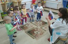 В детских ручках - маленький флажок