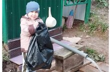 Ребята обращаются к жителям посёлка: "Не выбрасывайте бытовой мусор! Для этого есть специальные урны! Не засоряйте родники! Родник - источник жизни!"
