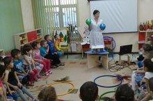 Сегодня воспитанники старшей группы №2 побывали в цирке. На занятии ребенок, переодевшийся в клоуна, развлекал детей. Клоун принес с собой много мячей, обручей, скакалок и дети с удовольствием вошли в роль цирковых артистов и исполняли разные "трюки".