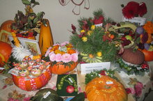 Одиннадцатый год подряд в нашем районе отмечается большой праздник - мы славим ценнейший и полезнейший овощ, растущий на нашем огороде, - Тыкву. Сколько вкусного можно приготовить из тыквы, сколько витаминов и микроэлементов содержится в ней. А сколько удивительных овощных фантазий можно изготовить своими руками! И в этом году коллектив воспитателей, родителей и детей принял самое активное участие в празднике урожая. Великолепные композиции, фигурки людей и животных, цветочные фантазии, сладости и вкусные пирожки, пирог из тыквы и выступление агитбригады - все было представлено на суд компетентного районного жюри. Результат нашего совместного труда был отмечен:в номинации "Самая красивая композиция из тыквы" мы награждены дипломом 3 степени, а выступление агитбригады оценено дипломом 2 степени. Спасибо всем за творчество, активность и труд!