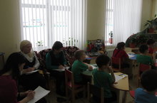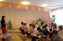 В детском саду прошел обучающий открытый показ НОД воспитателя по обучению русскому языку Загидуллиной Л.Х. Педагоги и воспитатели выступили в роли детей . После проведения открытого показа прошло обсуждение присутствующими хода НОД, методов и приемов, использованных воспитателем, было проанализировано достижение целей НОД. Заведующий Ахунова Г.М. в заключение каждому предложила проведение аналогичной работы с детьми своей группы и поиск новых путей и способов вовлечения детей в образовательную деятельность.