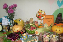 Сегодня в детском саду прошла выставка семейных творческих работ "Дары осени". Еще раз убедились, как много талантливых, увлеченных родителей, обладающих фантазией и способных научить творчеству своих детей. Прекрасные кареты из тыквы, композиции из сухоцветов, плетеные корзины, любимые герои из овощей и фруктов - все это украшало коридоры садика с самого утра. А с каким восторгом рассказывали дети , увидев свою работу, как вечером вместе с родителями выполняли ее. Как же это объединяет людей, делает их сплоченными единомышленниками. Выражаем огромную благодарность всем, кто принял участие в подготовке к выставке - конкурсу. Пусть огороды будут полны овощами и фруктами и не иссякнет творческий потенциал! Спасибо всем!
