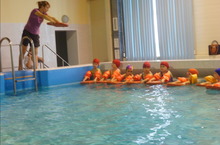 Группа делится на подгруппы по 6—8 человек. Дети плавают 25—30 мин. Наши воспитанники с большим удовольствием посещают эти занятия.