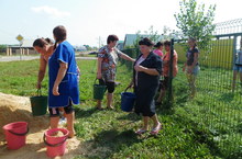 Пока дети спят, воспитатели и работники детского сада пополняют запасы песка на детских площадках. Пусть детям будет в радость игра на участке!