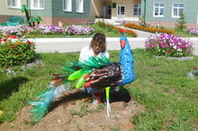 И павлина повстречали...Декоративная фигура, выполненная руками Халиуллиной Альфии, Гаяновой Айгуль, Исхаковой Гульназ, Абдуллиной Гулии и Зарипова Азата, занимает свое достойное место. Этот павлин сделан с помощью 900 шурупов и 60 пластиковых бутылок.