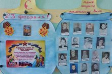 К 23 февраля в 1 младшей группе была оформлена фотогазета под названием «Папы тоже когда-то маленькими были». Очень интересно посмотреть на фото, увидеть похожие черты у ребят, сравнить – на кого же похожи сын или дочь. Газета стала не только поздравлением и украшением к празднику, но также была использована в игровом моменте «Найди своего папу».