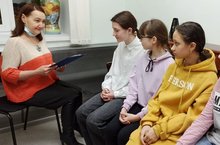 Тема: "Формирование вокальных навыков у подростков". Цель урока: закрепление ранее выработанных навыков певческого развития каждого участника коллектива, повышение вокальной техники. Форма урока: практическое занятие. Задачи: работа над чистотой пения, фразировкой дыхания, многоголосным звучанием, поэтапная работа над песней "Татарстан" (В.Максимовой), рабочее (черновое) исполнение песни под фонограмму.