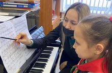 В конце урока ученица достигла поставленных задач и сыграла произведение с правильными штрихами.