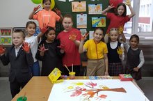 11 октября для учащихся 2 класса ФГТ 8 художественного отделения (преподаватель Мифтахова Ф.И.) был организован "Осенний бал для юных художников". Совместно с учащимися была украшена основная зона: рисунками на тему осени, яркими осенними листьями и шарами.