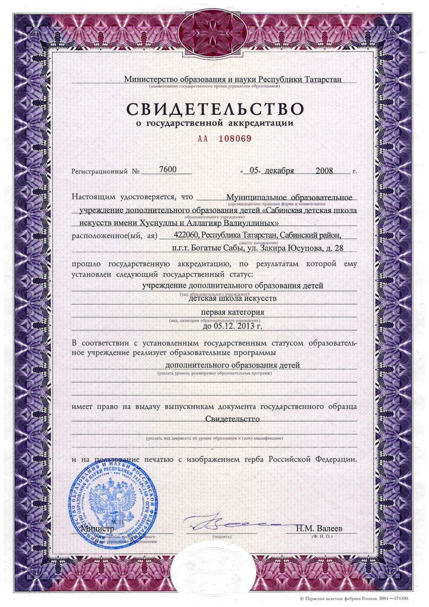 Свидетельство о государственной аккредитации
