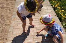 Воспитанники тоже с нетерпением ждали лето, чтобы дать волю фантазии на асфальтных дорожках рисовать разноцветными мелками все что захочется. И в один из таких погожих летних деньков воспитатели с ребятами решили порадовать себя таким увлекательным занятием и нарисовали на асфальте необычные узоры. Настроение у всех было отличное, малыши были в восторге от «шедевров», которые у них получились.