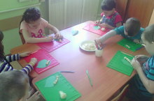 Лепка из соленого теста : "Гусеница на листе" 08.04.2016