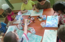 Рисование с использованием парафина, ко дню "Космонавтики -Звездное небо" 11.04.2016