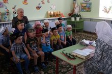 Бүген, 20 август, Сабабаш “Кояшкай” балалар бакчасына авылыбыз абыстае Нәзирә апа кунакка килде. Ул балларга догалар, сүрәләр укыды. Башларына түбәтәй кигән малайлар, яулык япкан кызлар аны кызыксынып тыңлады. Аннан соң алалар махсус китертелгән “Корбан” итеннән пешкән ризыклар белән сыйландылар.