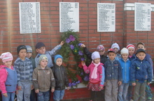 Балалар бакчасы мәктәп белән берлектә Җиңү көненә багышланган бәйрәм чарасында катнаштылар..Балалар, үз куллары белән ясаган чәчәкләрдән венок куйдылар.