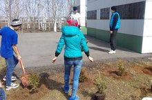 29 апреля после занятий учащиеся и учителя школы вышли на субботник. За несколько часов мы побелили деревья, очистили участок от мусора и осенних листьев, посадили деревья.