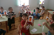 Балалар үзләре ясаган рәсемдәге кош турында шигырьләр сөйләделәр.