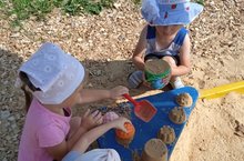 Игры с песком всегда были одной из любимейших забав детей. Песок- удивительный материал, из которого можно сотворить все что угодно! Песок завораживает детей, игры с ним и сооружение построек из него является одной из самых увлекательных занятий детей в летнее время. Воспитанника первой младшей группы, продолжая знакомиться с особенностями песка, испекли куличики.Выдумки детей очень богаты, главное, что они учатся в совместной друг с другом деятельности находить свое пространство и согласовывать его с мнением и уважением сверстников.