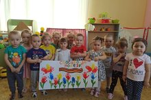 В преддверии праздника 9 Мая воспитатели с воспитанниками первых младших групп проводили беседы, рассматривали иллюстрации, открытки военной тематики и изготовли коллективную работу "Спасибо за Победу!". Мы надеемся, что каждая проделанная нами работа способствует формированию у детей чувства патриотизма, уважения к героическому прошлому нашей Родины.