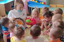Во второй группе раннего возраста №1 с целью формирования представления о правильном питании как составной части сохранения и укрепления здоровья, ребята познакомились с полезными свойствами овощей и фруктов, узнали много интересного. Научились называть их, определить цвет, разложить по тарелочкам.