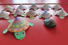 Все мы знаем, что дети очень любят что-то мастерить из бумаги. Сегодня ребята средней группы №1 сделали забавную черепашку из бумаги. Черепашки получились весёлыми и озорными, потому что дети проявили фантазию и воображение при оформлении поделки.