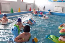 Польза плаванья несомненна для человека в любом возрасте, но для развивающего детского организма регулярные занятия этим видом спорта необходимы. Занятия с раннего возраста отлично закаливают ребенка, делают его менее подверженным заболеваниям , стимулируют правильное физическое развитие. Поэтому у нас в детском саду и летом в бассейне продолжаются занятия по плаванию. Дети с удовольствием посещают бассейн.