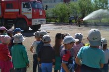 Для детей средних и старших групп огранизовали экскурсию в пожарную часть. Пожарные рассказали, как правильно вести себя во время пожара, вовремя распознать опасность, принимать меры предосторожности. Заинтересовала детей техника помогающая тушить пожар. Экскурсия способствовала воспитанию уважения и интереса к профессии пожарного, формированию негативного отношения к нарушителям правил пожарной безопасности.