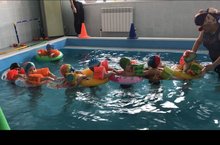 Инструктор по плаванию и воспитатели группы, организовали для родителей показ открытого занятия в бассейне, для того чтобы продемонстрировать достижения детей.