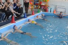Основной формой укрепления здоровья ребёнка, несомненно, являются физические упражнения и посещение бассейна. Занятия по обучению детей плаванию проводятся в игровом режиме с применением здоровьесберегающих технологий: дыхательные упражнения, профилактика нарушения осанки и плоскостопия, закаливание, что помогает малышам легче усвоить начальные навыки плавания. Родители подготовительных групп наблюдали различные игры на воде: «Лягушка» (прыжки в воде) , «Дельфин» (погружение с головой в воду с последующим выскакиванием по пояс), "Звездычка" (погружение с головой в воду с образованием фигуры звездочки) и т.д.