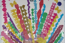 Воспитанники старшей группы №2 составляли коллективную композицию из аппликативных элементов на основе объединяющего образа. Они знакомились с новым способом вырезания из бумаги, сложенной гармошкой или дважды пополам.