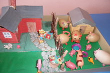 Во время режимного момента дети изготовили поделки из природного материала- яичной скарлупы. Затем решили построить деревенский дворик. Как интересно выдумывать вместе!