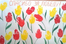 Задачи: Воспитывать чувство уважения к Ветеранам Великой Отечественной войны, желание сделать им приятное.Продолжать знакомить детей с нетрадиционной техникой рисования ладошками; развивать чувство композиции,цвета и ритма.