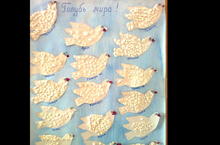 Коллективная работа "Голубь мира" во 2 младшей группе № 2. 08.05.2014 Целью данного занятия было: развитие у детей высоких нравственных качеств-патриотизм: гордость за сою родину, прививать уважение к истории своего Отечества, к людям, защищавшим родной край в тяжелые годы войны; а также продолжать знакомить с техникой бумагокручением; дать понятие о том, что белый голубь является - символом мира.