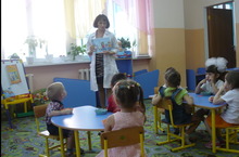 С целью расширения и закрепления знаний детей о правилах поведения на улицах и дорогах, о различных видах транспорта, о знаках подготовительная группа №1 показала открытое занятие на тему "Красный, желтый, зеленый". На занятии приняла участие начальник Кукморского филиала РКУ "Дирекция БДД РТ" Яковлева Елена Владимировна.