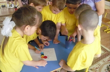 "Мы знатоки английского языка" 25.04.2013 Среди двух подготовительных группах под руководством воспитателя английского языка Нигматуллиной Лилии Рафаилевны было проведено развлекательное мероприятие КВН "Мы знатоки английского языка". Были приглашены родители из обеих групп.Команды участвовали в 7 конкурсах.Они показали свои таланты, знания полученные на занятиях английского языка.Дети были очень активными, ловкими и умелыми. Молодцы, ребята!!!