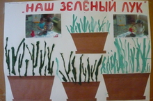 "Наш зелёный лук" 26.04.2013 Воспитанники I младшей группы №2 выполняли коллективную работу на тему "Наш зелёный лук", целью которого являлось продолжить развивать интерес детей к результатам своего труда по выращиванию зелёного лука, желание нарисовать его красками и скручиванием бумаги круговыми движениями ладоней. Вот на грядке лук зелёный, Ярким солнцем освещённый, Стрелы вытянулись в ряд, Как солдатиков в ряд. Знают все, что лук полезен, Витаминами богат, Но немного горьковат. В этом лук не виноват. От природы он такой, Очень скромный и простой. Ешьте все зелёный лук, Он здоровью верный друг!