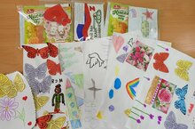 Воспитанники нашего детского сада своими руками сделали очень красивые и трогательные открытки, а внутри ребята написали доброе послание нашим защитникам. Все открытки переданы в штаб, а оттуда отправятся на передовую. Мы желаем нашим героям крепкого здоровья, мирного неба, скорейшего возвращения домой с ПОБЕДОЙ!