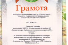 Воспитанник средней группы №1 Рахимов Данир (руководитель: Афанасьева Г.М.) занял 3 место на муниципальном этапе Республиканского конкурса детских поделок "Я и Красная книга" , был награжден грамотой Государственного комитета Республики Татарстан по биологическим ресурсам. От всей души поздравляем и желаем в дальнейшем творческих успехов!!!