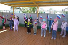 День России – это отличный повод рассказать нашим воспитанникам ещё раз об истории нашей огромной и самой красивой в мире многонациональной страны, о многообразии народных традиций, совершить интересные увлекательные путешествия по просторам нашей необъятной Родины. Сегодня у воспитанников второй младшей группе №2 "Смешарики" сформировалось представление о России как о государстве, о родной стране. Воспитали чувство любви к родному краю. Детям было рассказано, почему наш флаг состоит из трех цветов, и что обозначает каждый цвет,слушали гимн России. После этого все вместе рисовали мелками на асфальте на тему «Флаг России».
