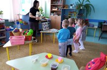 Бүген икенче кечкенәләр төркемнәрендә "Аюны үз сәламәтлеге турында кайгыртырга өйрәтик" темасына дәрес оештырылды. Балалар әңгәмә, "Уйлап тап", "Дөрес итеп җый" уеннары барышында сәламәтлекне ныгыту һәм саклау ысуллары (иртәнге гимнастика, саф һавада йөрү, витаминнар, яшелчәләр һәм җиләк-җимешләр) турында белемнәрен ныгыттылар, фикерләү, коммуникатив сәләтләрен үстерделәр, сүз байлыгын арттырдылар. Балалар Аюга авырмас өчен нәсрсә эшләргә кирәген бик теләп өйрәттеләр.