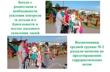 Воспитанники средней группы № 2 также раздали памятки родителям по предотвращению террористических актов.