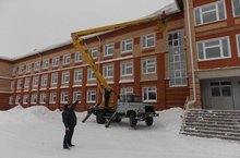 Сегодня, 18 февраля 2017 года, в МБОУ "Шеморданский лицей Сабинского муниципального района Республики Татарстан" в целях соблюдения техники безопасности, под руководством директора лицея Шамилова Ильшата Мирдахметовича, силами учителей физической культуры были очищены края крыши и окна здания от обвисшего снега.