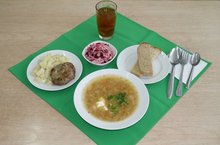 При выборе блюд для комплексного обеда учитывается использование разнообразных продуктов для того, чтобы обед был полноценным. Если второе блюдо – овощной суп (например, «Борщ с капустой и картофелем с фрикадельками из индейки»), то первое блюдо – с использованием крупы (например, «Каша вязкая молочная из рисовой крупы со сливочным маслом»).