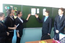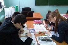 Учащиеся 10 Б класса развивают презентационные навыки. Учитель английского языка создает положительную атмосферу, настрой на работу, равномерно распределяя работу для каждого из учащихся. Всего этого можно достигнуть благодаря обучающим структурам Сингапурского проекта.