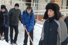 В пятницу 8.02.13. восьмиклассники убирали снег на пришкольном участке. Совместный труд объединяет, поднимает настроение, повышает самооценку. Мы делаем полезную работу для лицея и самих себя!