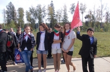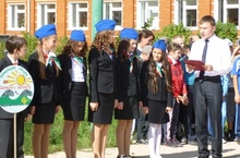 15 сентября 2012г отряд 8в класса «Дружба», участвовал в спортивном празднике. Староста класса Абдраимов Дима гордо поднимает знамя класса. Классный руководитель Хамзина А.М.