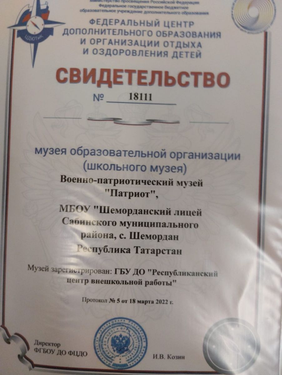 Муниципальное бюджетное общеобразовательное учреждение "Шеморданский лицей "Рост" Сабинского муниципального района Республики Татарстан"
