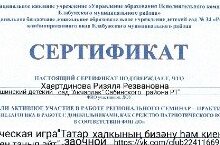 Регионального семинар–практикума «Музейная педагогика в работе с дошкольниками, как средство патриотического воспитания в соответствии ФОП ДО», заочные участие Хаертдинова Ризяля Резвановна